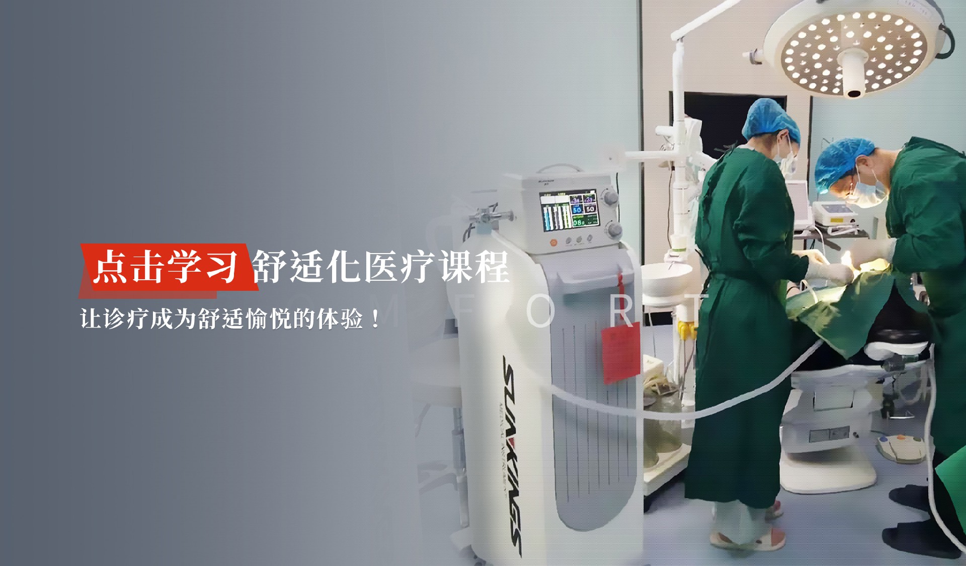 舒適醫(yī)療是讓患者在沒有痛苦和恐懼的環(huán)境下就診、檢查及治療,使就醫(yī)成為一個(gè)愉快和舒適的過程